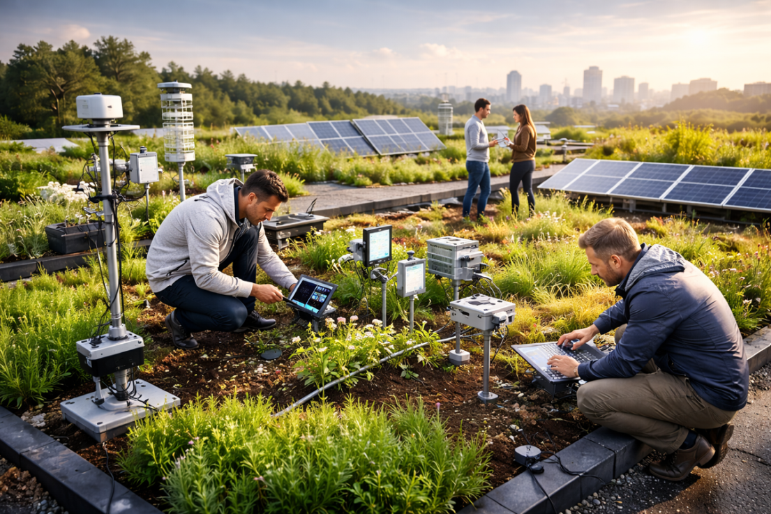 biodiversity enhancement, and solar energy—into a single rooftop system validated by real-time IoT